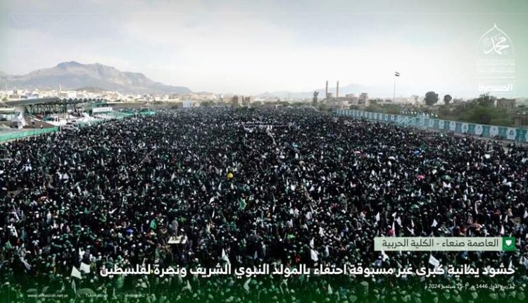 واستمعت الحشود إلى كلمة قائد الثورة السيد عبد الملك بدرالدين الحوثي الذي حيا من خلالها الحشود المليونية بكل الساحات، معتبرًا الاحتفاء بهذه المناسبة العظيمة مظهراً من مظاهر الإيمان والتقدير لنعمة الله بهذا النبي الخاتم، سائلاً الله عز وجل أن يكتب أجر كل من حضر لإحياء هذه المناسبة الجليلة.