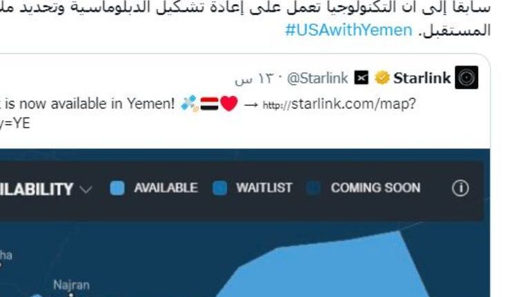 وجاءت تصريحات بلينكن عشية احتفال السفارة الامريكية بتفعيل خدمة “ستارلينك” في مناطق سيطرة الاحتلال الامريكي السعودي الإماراتي