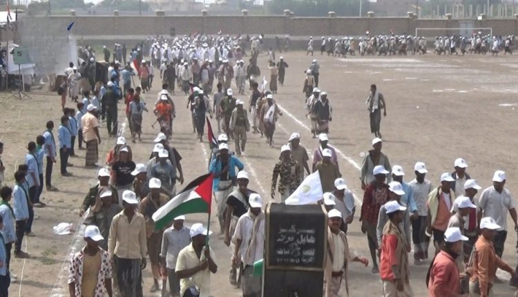 شهدت مديرية زبيد بمحافظة الحديدة، اليوم، عرضا شعبيا لقوات التعبئة العامة لخريجي دورات ” طوفان الأقصى” احتفاء بالعيد العاشر لثورة 21 سبتمبر وتجديد التضامن مع الشعب الفلسطيني.