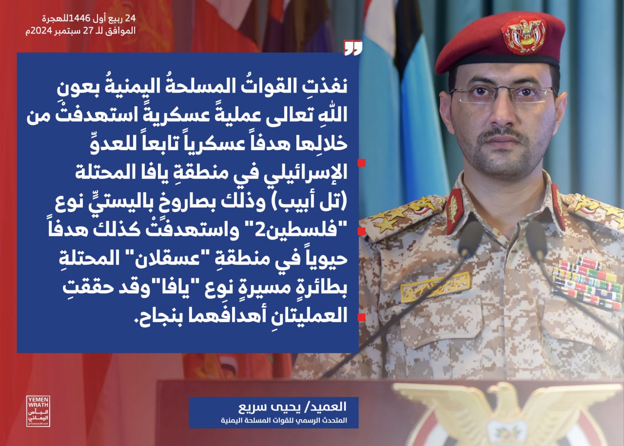 شاهد| القوات المسلحة اليمنية تستهدف أهدافا عسكرية في منطقتي يافا و”عسقلان” المحتلين (إنفوجرافيك)