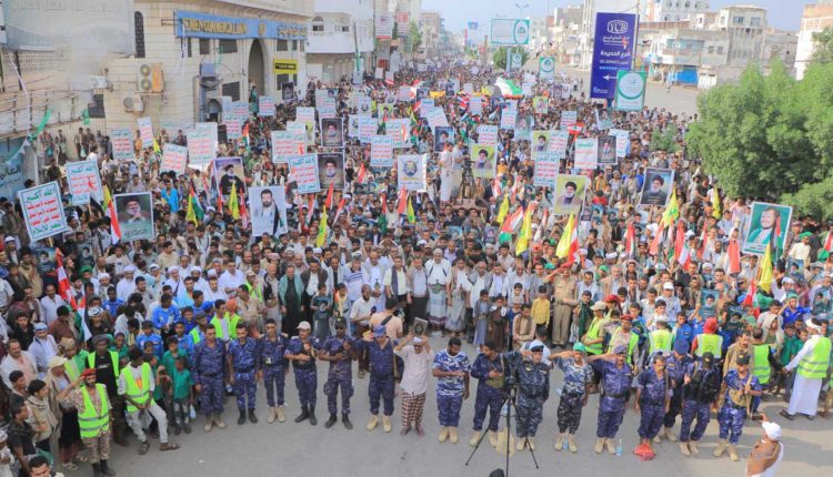 حشود مليونية في 73 ساحة بالحديدة تنديداً بجريمة اغتيال الشهيد نصر الله وتضامناً مع لبنان وفلسطين
