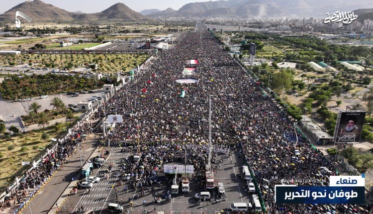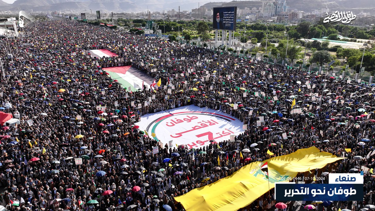صور جوية| ميدان السبعين بالعاصمة صنعاء يشهد حشود مليونية في الذكرى الأولى لعملية طوفان الأقصى في مسيرة “طوفان نحو التحرير” 04-04-1446هـ | 07-10-2024م