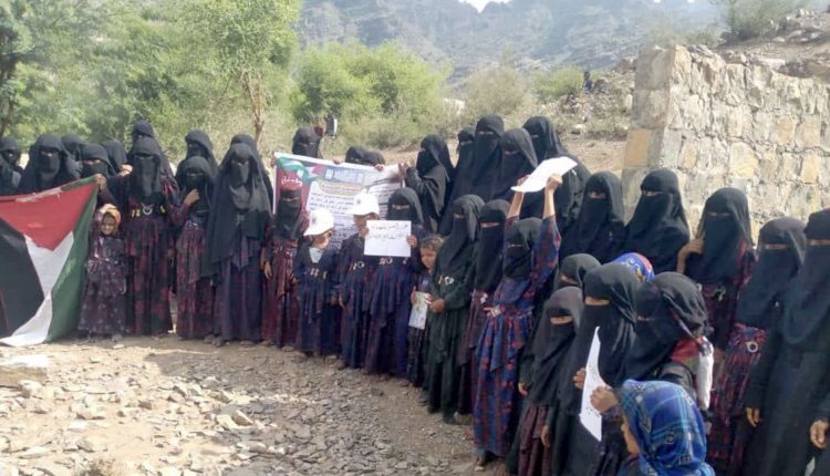 وقفة نسائية في مديرية جبل رأس بالحديدة تضامناً مع الشعبين الفلسطيني واللبناني
