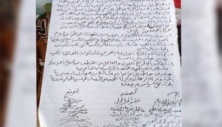 وعبر البيان، الذي صدر بعد اجتماع للمشايخ والشخصيات القبلية في عزلة الزهاري، عن إدانته لحادثة اقتحام قرية حيس سالم واختطاف الشيخ عبدالسلام زيدي على يد مليشيا تابعة للقيادي في العمالقة، نزار الوجيه. كما عبّر المشاركون في الاجتماع عن قلقهم البالغ إزاء مصير الشيخ زيدي، الذي لا يزال مجهولًا.