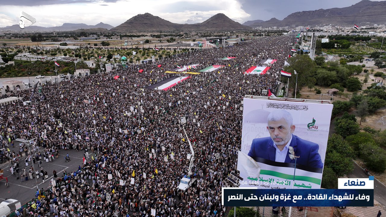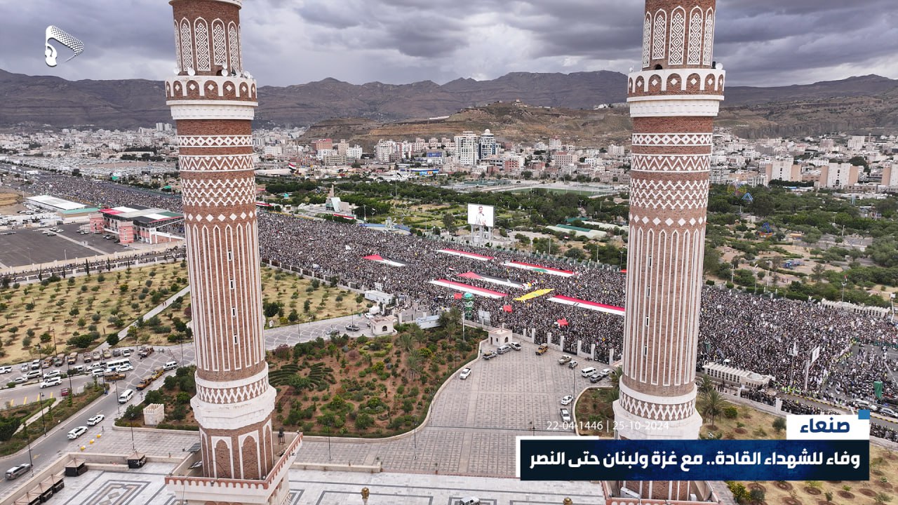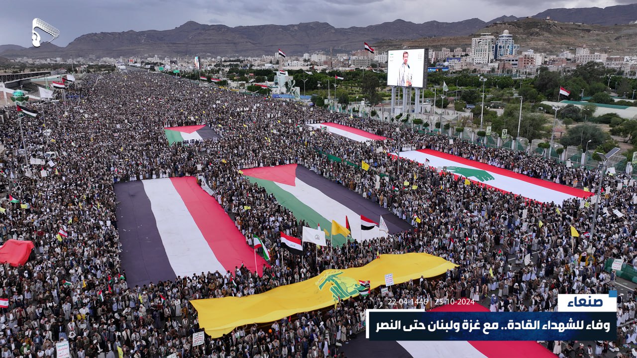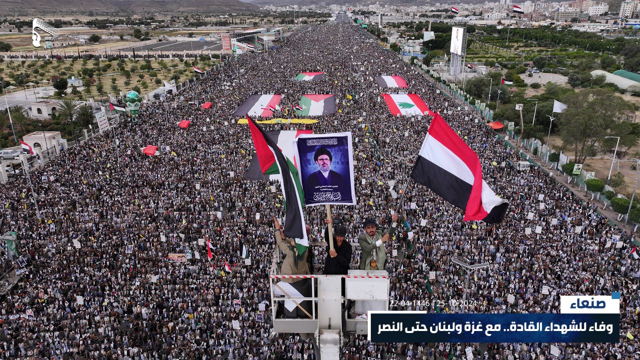 صور جوية | في ذروة الصمت والتخاذل، جبهة يمن الإيمان مستمرة والشعب حاضر وجاهز للمعركة.. حشود مليونية في مسيرة “وفاء للشهداء القادة.. مع غزة ولبنان حتى النصر” بميدان السبعين في العاصمة صنعاء 22-04-1446هـ | 25-10-2024م