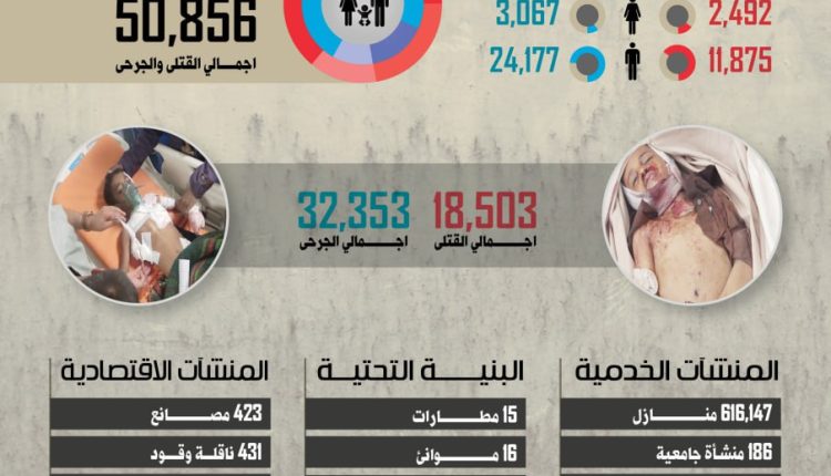 بالأرقام.. إحصائية جديدة لمركز عين الإنسانية تكشف جرائم تحالف العدوان الأمريكي السعودي في اليمن خلال 3.500 يوم (تفاصيل + إنفوجرافيك)