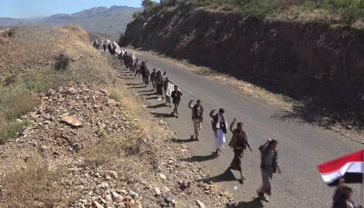 نظم خريجو الدفعة الخامسة لدورات “طوفان الأقصى” في عزلة أولاد أحسن، بمديرية بلاد الروس في محافظة صنعاء، اليوم، مناورة عسكرية ومسيراً راجلاً بمرور عام على إنطلاق معركة “طوفان الأقصى”.