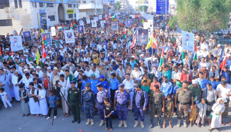 97 مسيرة جماهيرية في الحديدة تضامناً مع الشعبين الفلسطيني واللبناني وتأكيداً على الجاهزية لمواجهة أي تصعيد أمريكي صهيوني