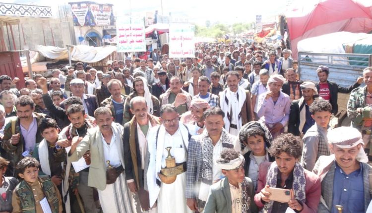 إلى ذلك شهدت مديريات المربع الشمالي “يريم، السدة، النادرة، والرضمة” عشر مسيرات حاشدة، طالب فيها المشاركون، بضرورة اتخاذ مجلس الأمن موقفاً حازماً إزاء جرائم الكيان الصهيوني في المنطقة.