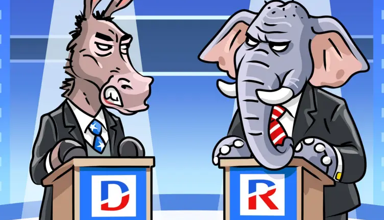 يبرز في قلب الساحة السياسية الأمريكية، رمزا الفيل للحزب الجمهوري والحمار للحزب الديمقراطي كعلامات فارقة تعكس هوية الحزبين ومواقفهما.