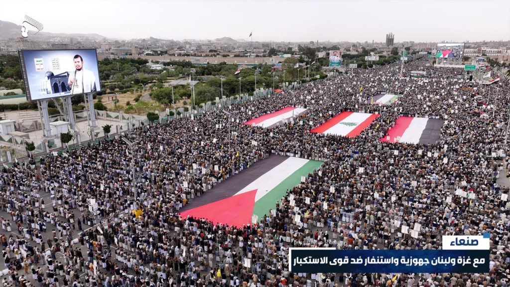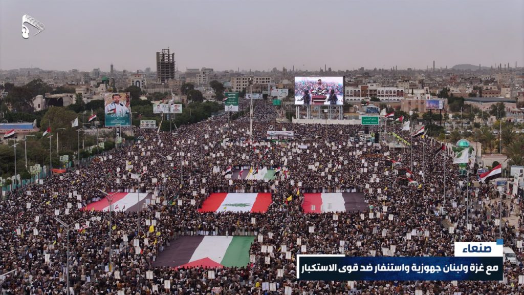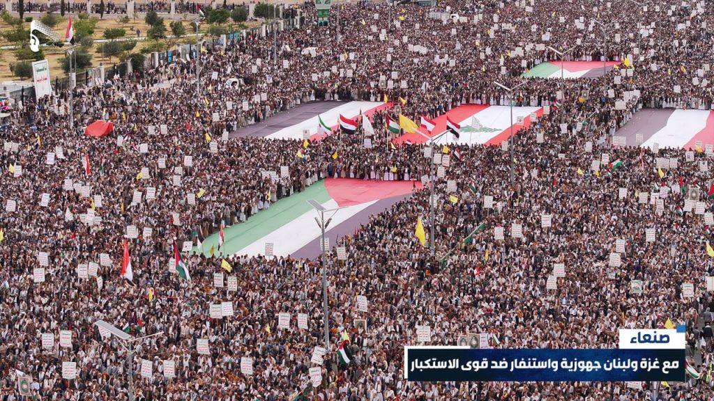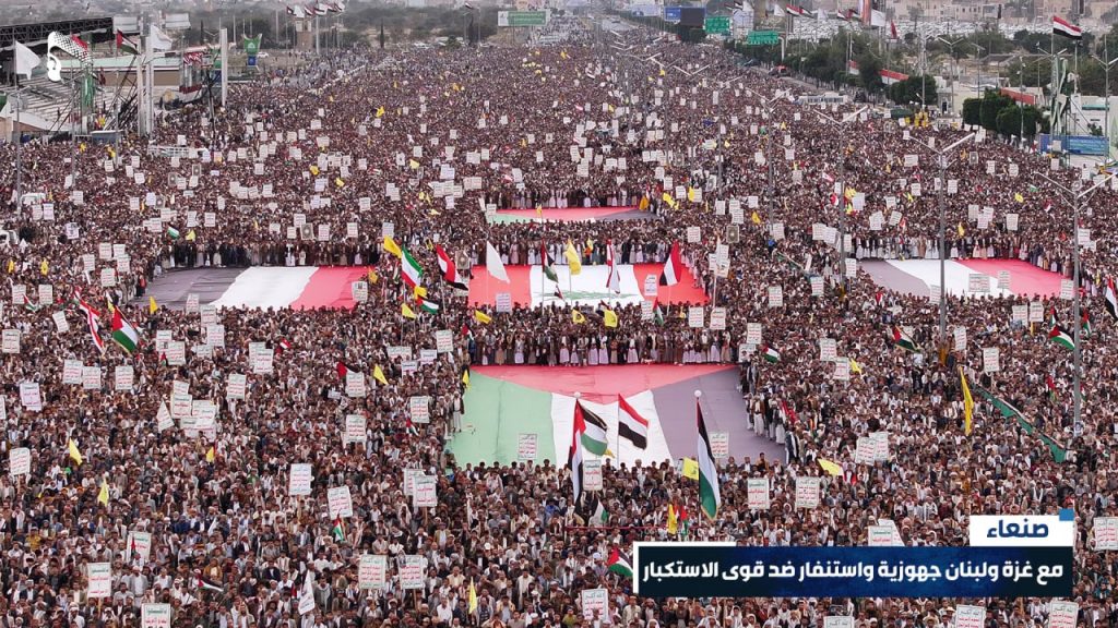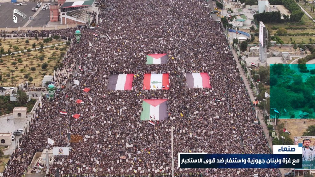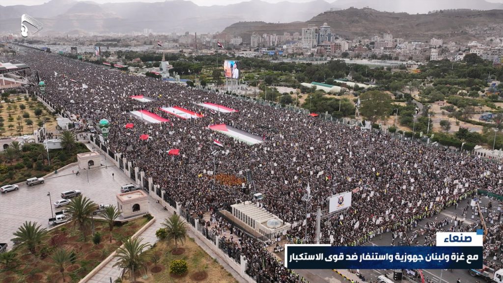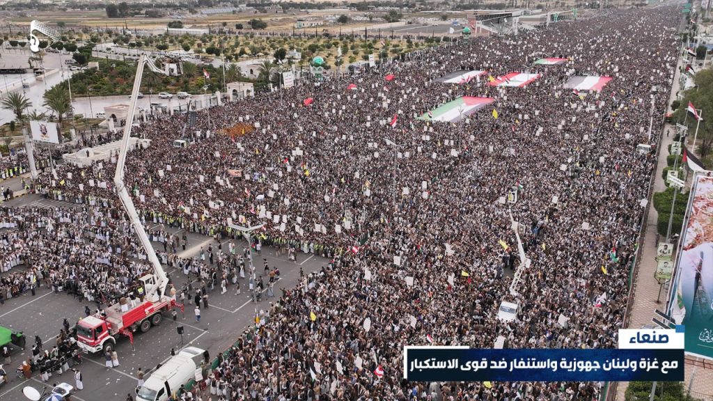 صور جوية| غزوة من أهم الغزوات لإسقاط هيبة ترامب وأمريكا في نفوس الأعراب والشعب اليمني من العاصمة صنعاء لن نترك غزة ولبنان ومعكم حتى نصر – مسيرة “مع غزة ولبنان.. جهوزية واستنفار ضد قوى الاستكبار” 06-05-1446هـ | 08-11-2024م