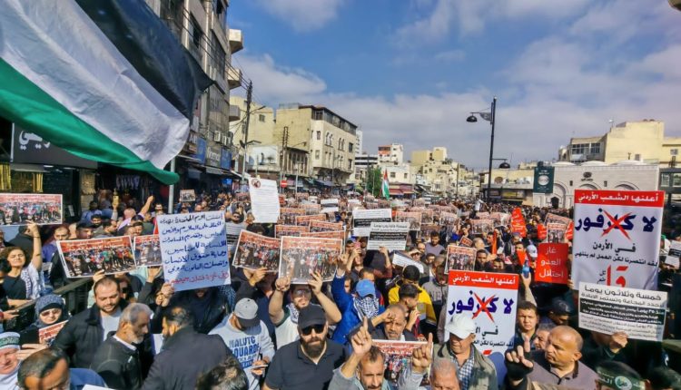 تظاهرة شعبية حاشدة في الأردن تندد بالإبادة الجماعية التي يتعرّض لها الشعبين الفلسطيني واللبناني