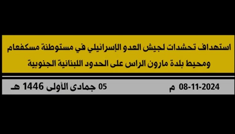 شاهد| عملية استهداف المقاومة الإسلامية في لبنان تحشّدات لجيش العدو الصهيوني في مستوطنة مسكاف عام ومحيط بلدة مارون الراس على الحدود الجنوبية