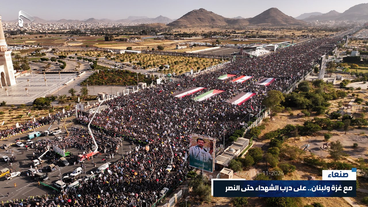 صور جوية| استجابة لدعوة السيد القائد.. حشود مليونية تصعد من خروجها في ميدان السبعين بالعاصمة صنعاء في مسيرة “مع غزة ولبنان.. على درب الشهداء حتى النصر” 13-05-1446هـ | 15-11-2024م