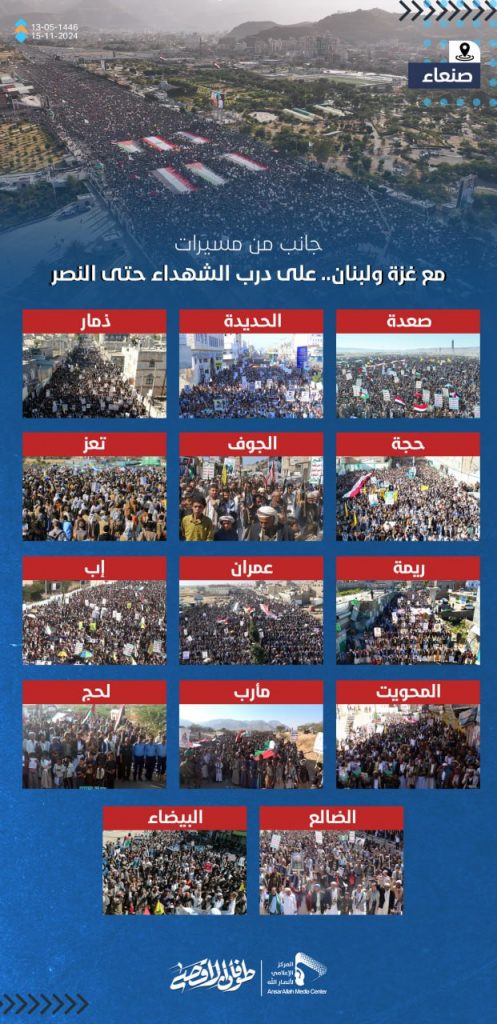 صور شاهد| مليونية “مع غزة ولبنان.. على درب الشهداء حتى النصر” في العاصمة صنعاء والمحافظات يمانيون/ صور شاهد| مليونية “مع غزة ولبنان.. على درب الشهداء حتى النصر” في العاصمة صنعاء والمحافظات Share