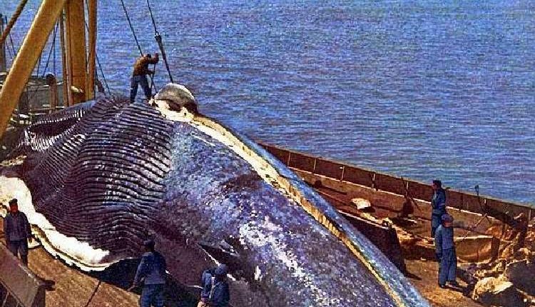 يتألف غذاء الحيتان الزرقاء كغيرها من الحيتان البالينية بشكل حصري تقريباً من القشريات الصغيرة المعروفة باسم الإيفوزيات.كانت الحيتان الزرقاء وفيرة في كل محيطات الأرض تقريباً حتى بداية القرن العشرين، إذ كان صيادو الحيتان يصيدونها لأكثر من قرن من الزمن حتى صارت على وشك الإنقراض، ولكن المجتمع الدولي قام بحمايتها سنة 1966 مما أدى إلى تحسن أوضاعها.