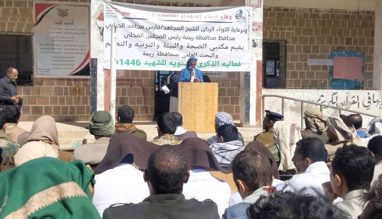نظمت مكتبا الصحة والبيئة والتربية والتعليم والبحث العلمي بمحافظة ريمة ، اليوم السبت، فعالية خطابية إحياءً الذكرى السنوية للشهيد.