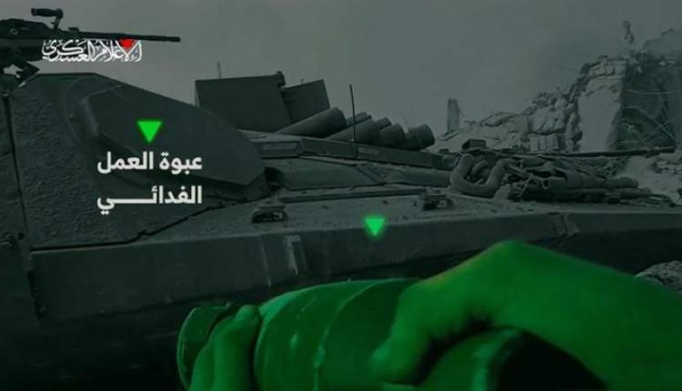 كما وثقت المشاهد استهداف جرافة D9 بقذيفة الياسين 105 بشارع السكة، واستهداف ناقلة جند بقذيفة الياسين 105 بشارع العجارمة، واستهداف دبابة “ميركافا” بقذيفة “تاندوم” شرق مفترق الصفطاوي غرب مخيم جباليا.