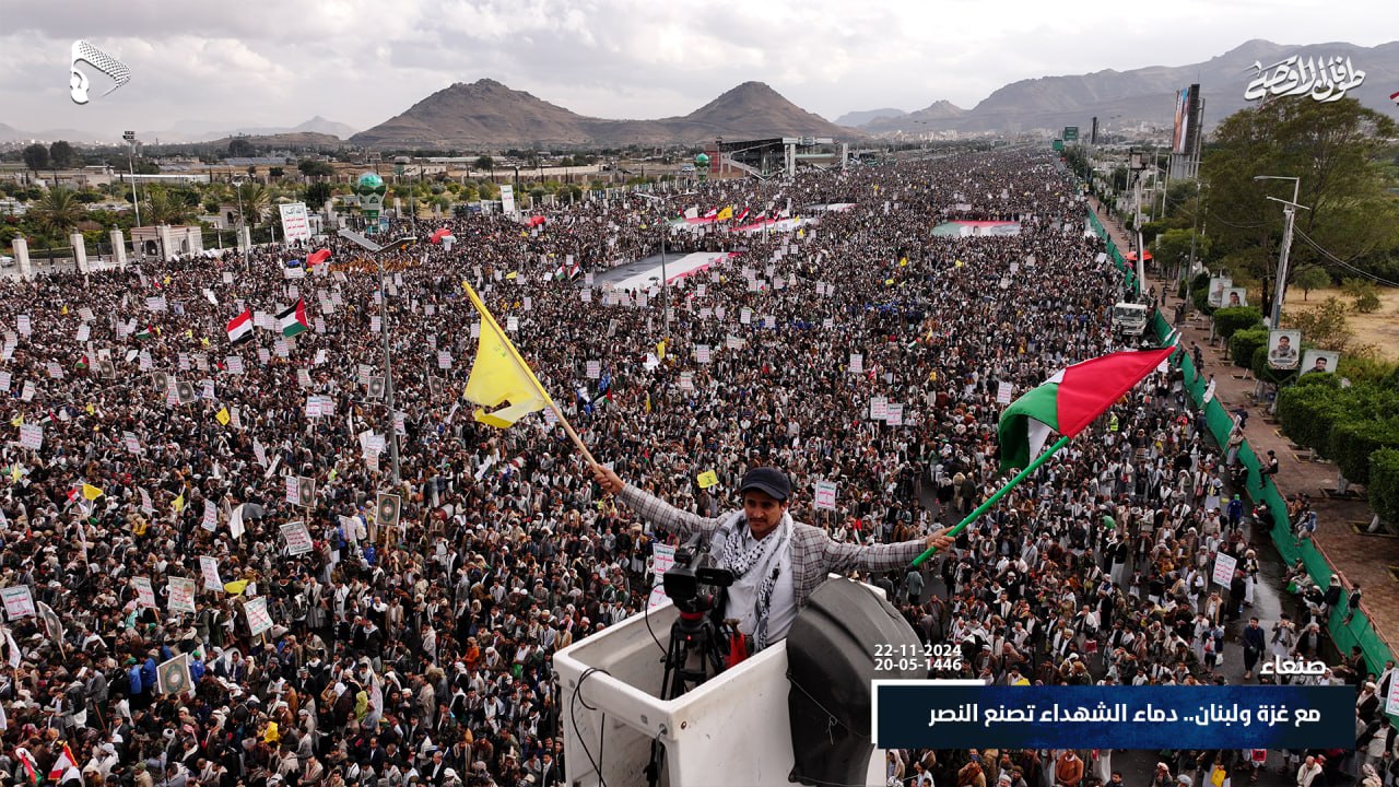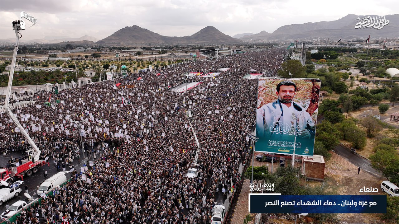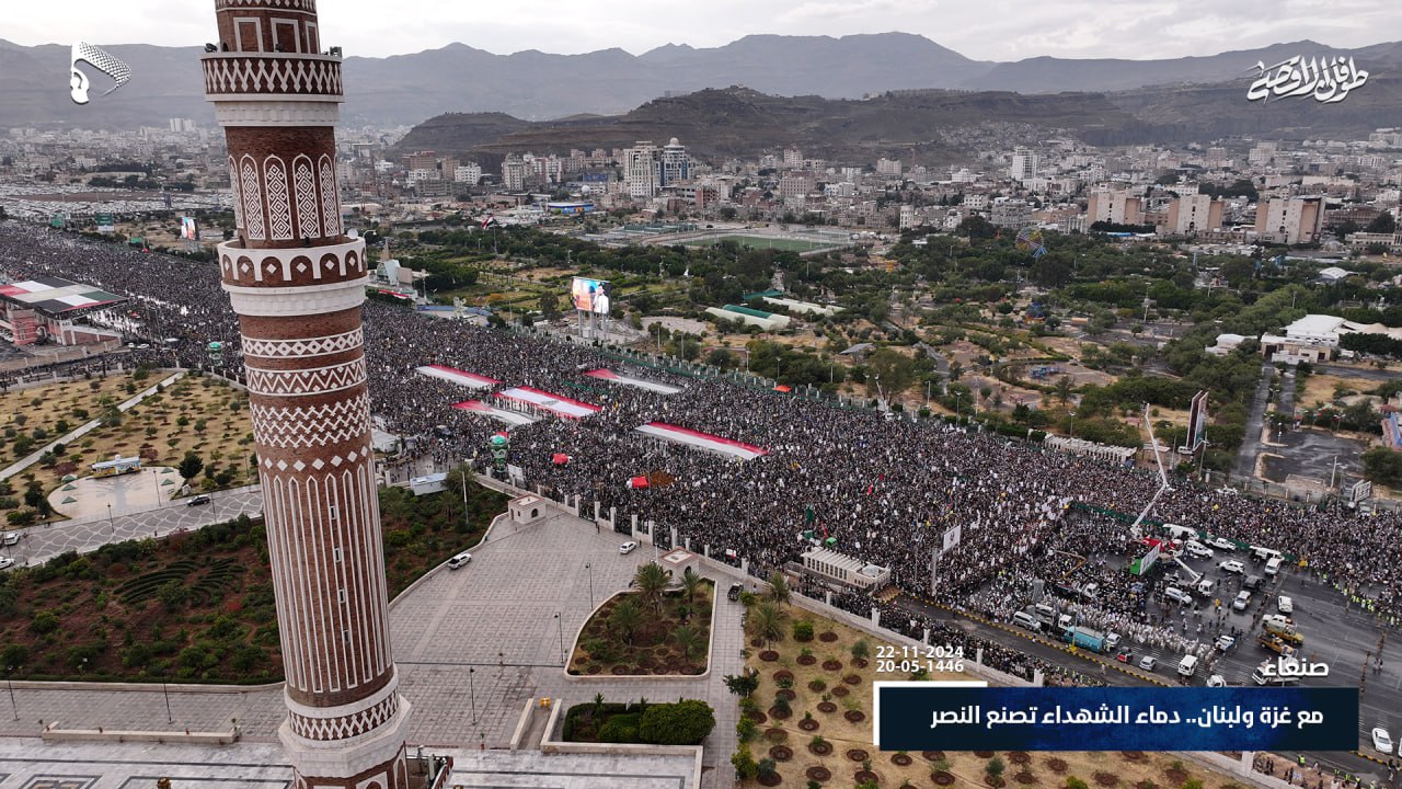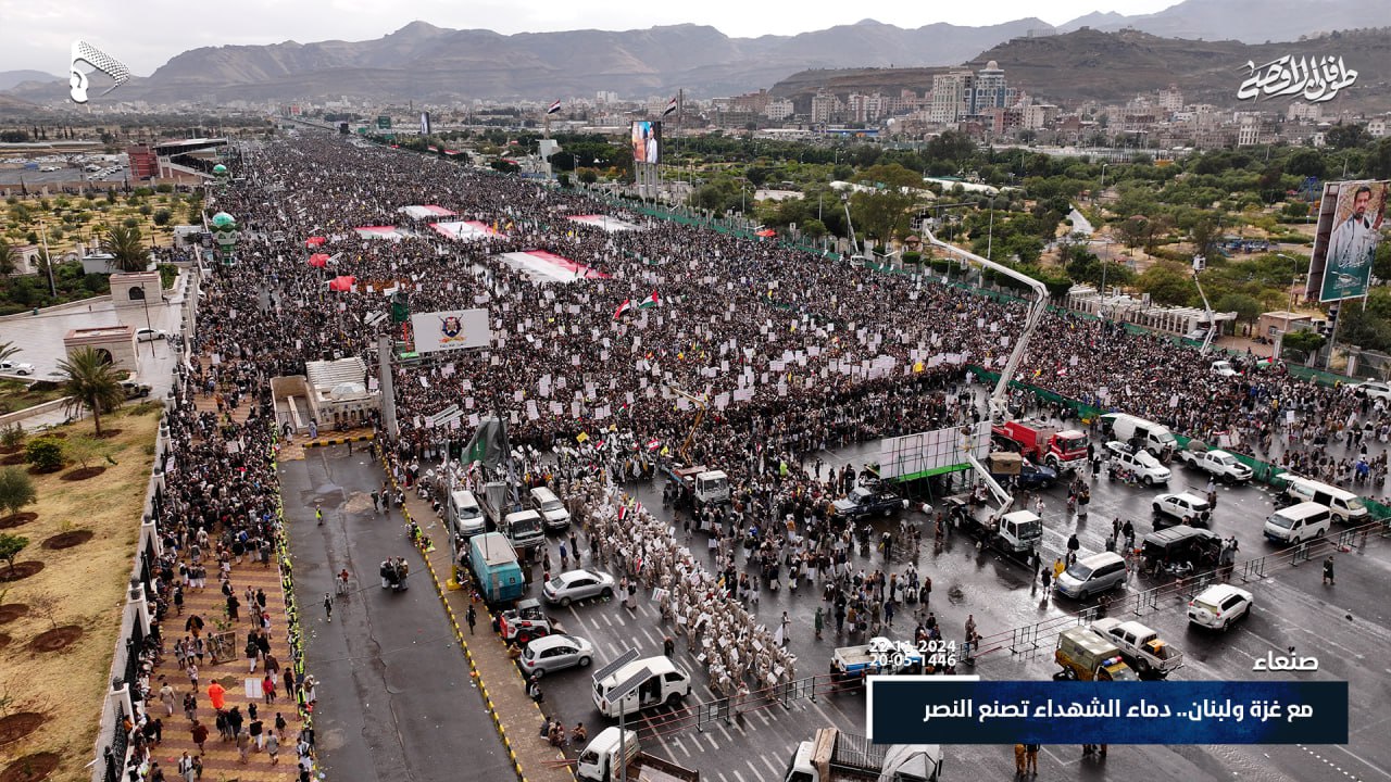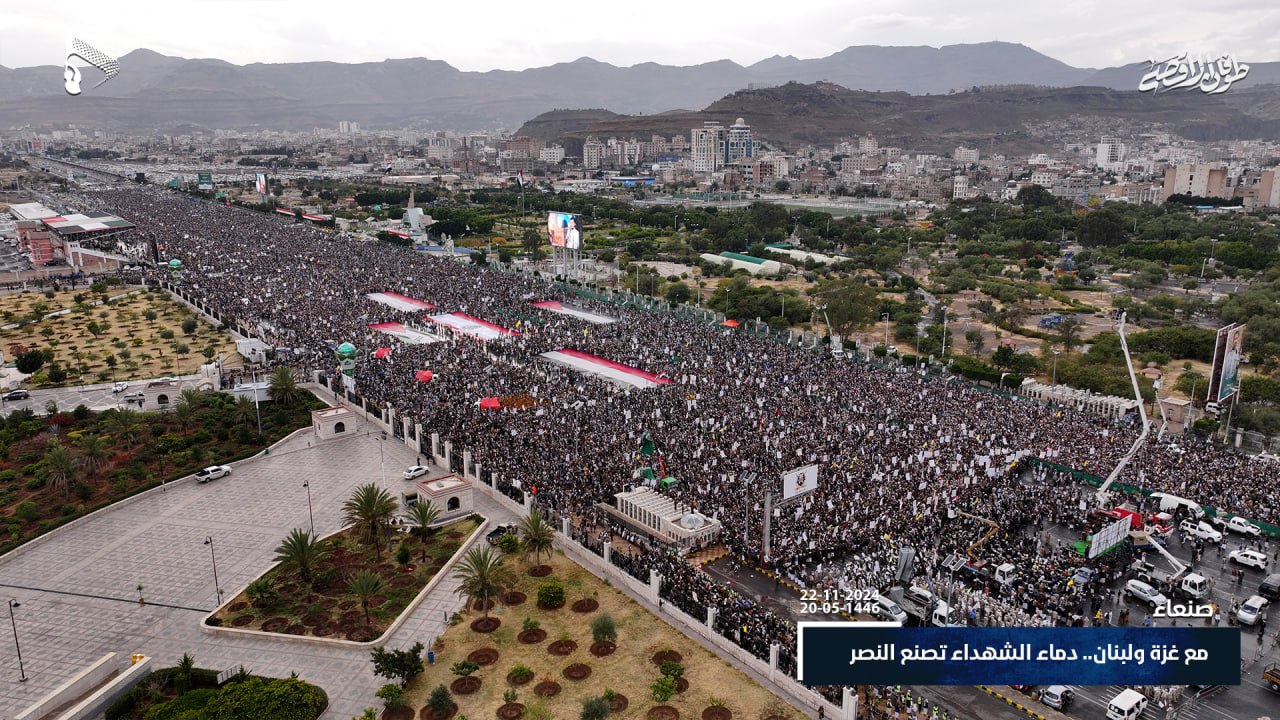 صور جوية| على طريق القدس ودرب من استشهدوا على طريقه… حشود مليونية في مسيرة “مع غزة و لبنان.. دماء الشهداء تصنع النصر” في ميدان السبعين بالعاصمة صنعاء 20-05-1446هـ | 22-11-2024م