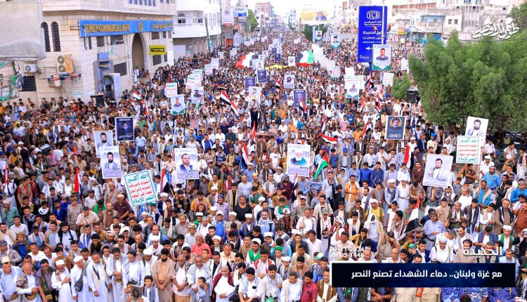 محافظة الحديدة تشهد 103 مسيرات تحت شعار “مع غزة ولبنان دماء الشهداء تصنع النصر”