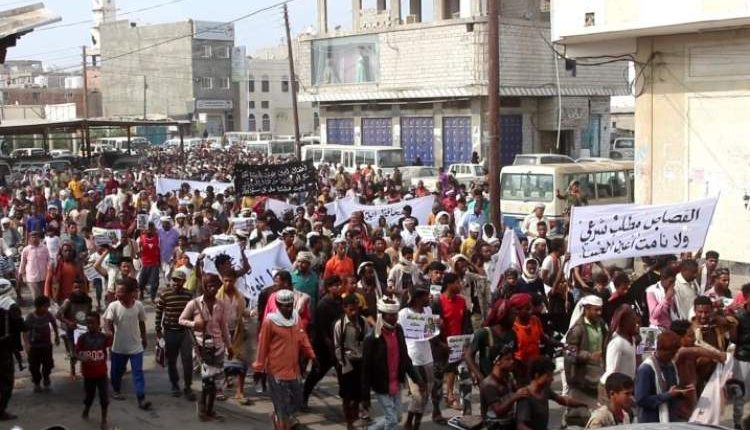 مظاهرات حاشدة في أبين تطالب بصرف المرتبات وتندد بتدهور الأوضاع الاقتصادية