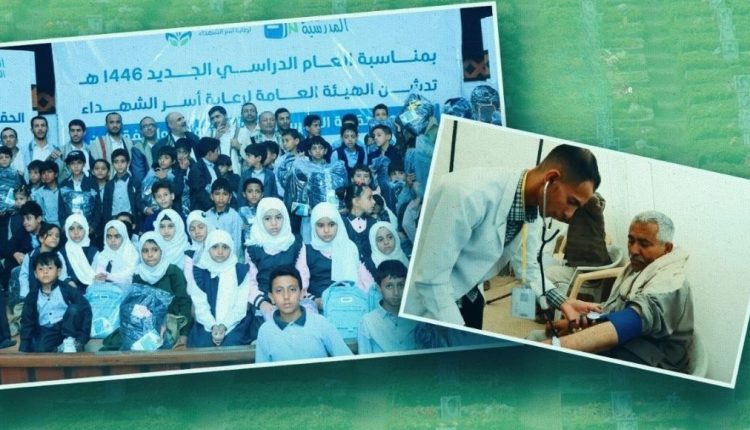 وفي حوار لموقع أنصار الله الرسمي يؤكد حسين القاضي وكيل قطاع الرعاية بالهيئة العامة لرعاية أسر الشهداء والمفقودين أن القطاع يقوم بتوفير خدمات شاملة لذوي الشهداء من الدرجة الأولى والمتمثلة في (الأب والأم وأرملة الشهيد وكذا أبناء وبنات الشهيد).