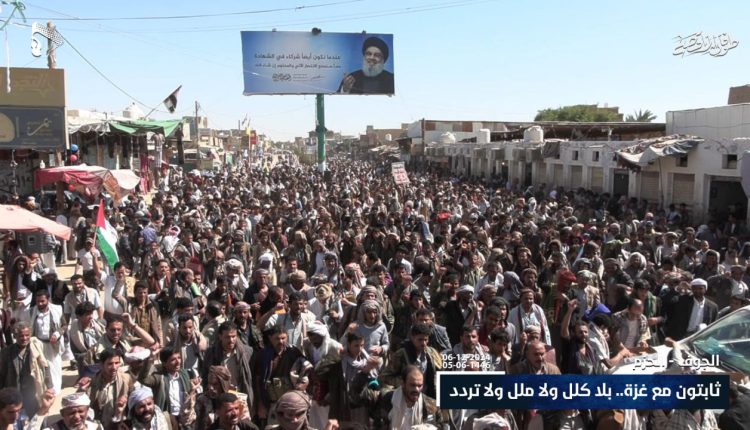 شهدت محافظة الجوف اليوم الجمعة، 34 مسيرة حاشدة، تحت شعار “ثابتون مع غزة.. بلا كلل ولا ملل ولا تردد” تأكيدا على الاستمرار في إسناد غزة.
