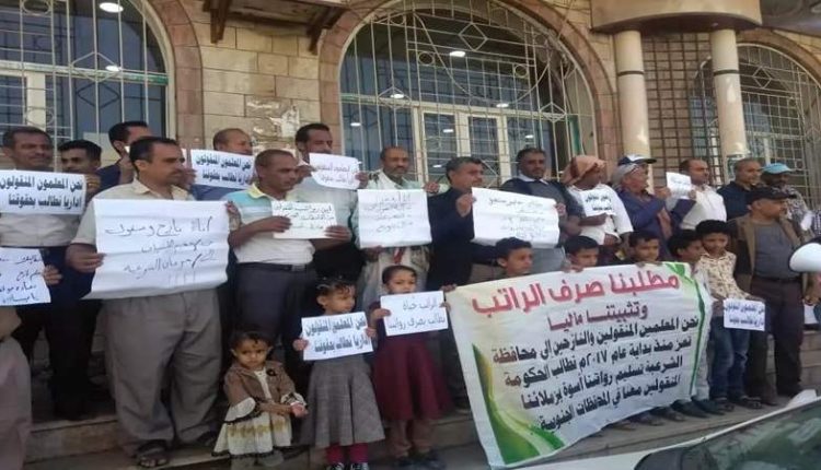 معلمو تعز يهددون بالتصعيد وتعليق الدراسة بسبب عجز حكومة المرتزقة عن دفع رواتبهم