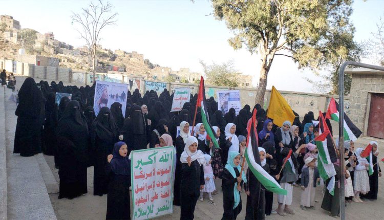 وأدانت المشاركات في الوقفات في مديريات قارة وكشر والمحابشة وأفلح اليمن وبني الشماخ والوعلية وعلكمة في مديرية المفتاح وحجر، المجازر اليومية والإبادة الجماعية التي يرتكبها العدو الصهيوني الأمريكي في قطاع غزة، وانتهاك المقدسات.
