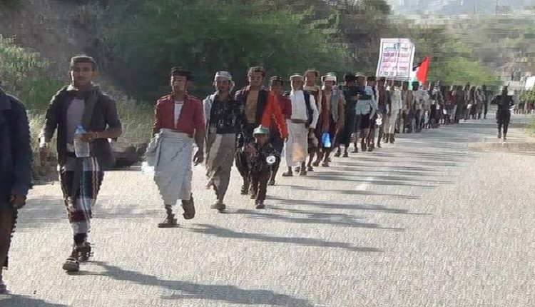 وفي المسير، رفع المشاركون العلمين اليمني والفلسطيني واللافتات والشعارات المعبرة عن التأييد لخيارات قائد الثورة السيد عبدالملك بدر الدين الحوثي، ودعم المقاومة الفلسطينية في مواجهة العدوان الصهيوني على قطاع غزة والأراضي الفلسطينية المحتلة.