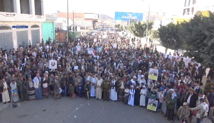 مسيرات حاشدة في البيضاء تحت شعار “مع غزة جهاد وتعبئة واستنفار.. وجاهزون لردع أي عدوان”