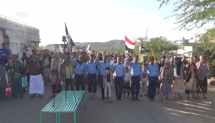 وأكدوا في المسيرة التي شارك فيها وكيل محافظة لحج فيصل الفقيه، ومسؤول التعبئة بالمحافظة جميل الصوفي، ومدير المديرية وحيد الخضر، وقائد اللواء 15 مشاة العميد ناجي عمير وقيادات عسكرية وأمنية وشخصيات اجتماعية، أن موقف اليمن المساند لغزة ثابت وصلب، مهما صعّد العدو الصهيوني لجرائمه.