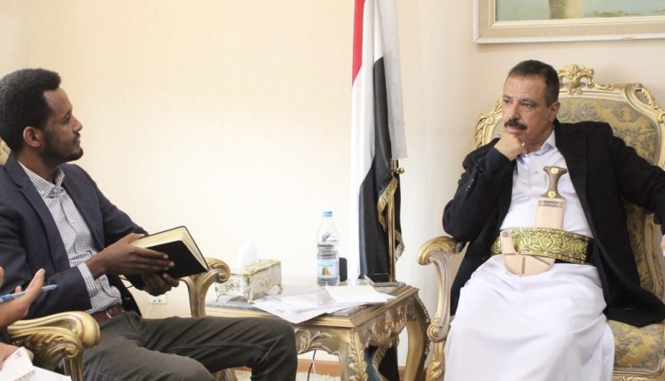 التقى وزير الخارجية والمغتربين جمال أحمد عامر، اليوم الأحد ، المدير القطري لمنظمة زوا الدولية، بركات كاهساي.