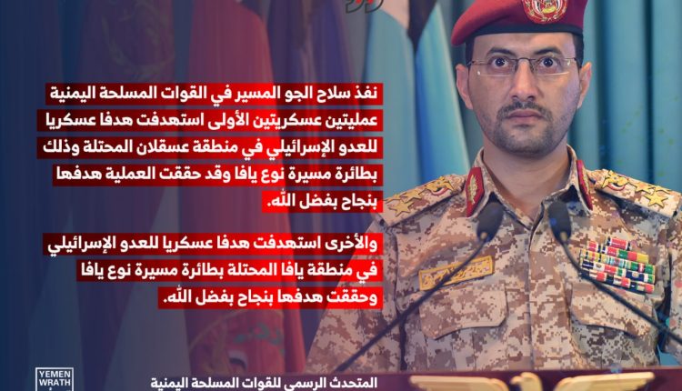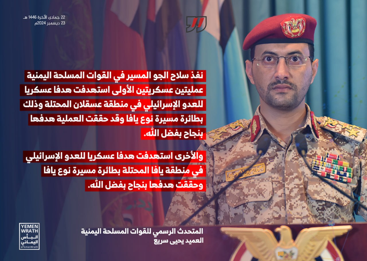 صور بيان القوات المسلحة اليمنية بشأن استهداف هدفين عسكريين في منطقتي يافا و عسقلان المحتلتين بطائرة مسيرة نوع يافا (إنفوجرافيك) يمانيون/ صور بيان القوات المسلحة اليمنية بشأن استهداف هدفين عسكريين في منطقتي يافا و عسقلان المحتلتين بطائرة مسيرة نوع يافا Share