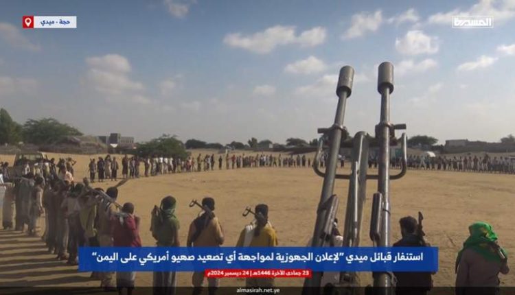 وبارك أبناء ميدي في وقفة حاشدة العمليات النوعية التي تنفذها القوات الصاروخية والقوات المسلحة في يافا المحتلة وإفشال الهجوم الأمريكي البريطاني على اليمن.