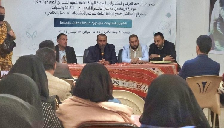 وخلال الحفل، الذي حضره وكيل الوزارة، فهد نزار، والمدير التنفيذي لصندوق التنمية والتراث الثقافي، إبراهيم الموشكي، وممثل الهيئة العامة لتنمية المشاريع الصغيرة والأصغر، محمد طبقة، أشاد الوزير اليافعي بمستوى مخرجات الدورات التدريبية، مؤكداً على أهمية هذه المشاريع في تعزيز الإنتاج المحلي.