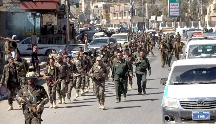 مناورة ومسير عسكري لخريجي دورة “طوفان الأقصى” من منتسبي أمن عمران