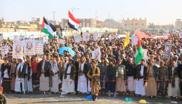 وأكد بيان صادر عن المسيرات على ثبات موقف الشعب اليمني الإيماني والمبدئي والإنساني المدافع عن غزة، واستمراره في معركة “الفتح الموعود والجهاد المقدس” بوتيرة تصاعدية، بلا سقوف ولا خطوط حمراء، معتمدين على الله ومتوكلين عليه ولن يثنينا العدوان الصهيوني ولا الأمريكي والبريطاني على بلدنا عن ذلك.