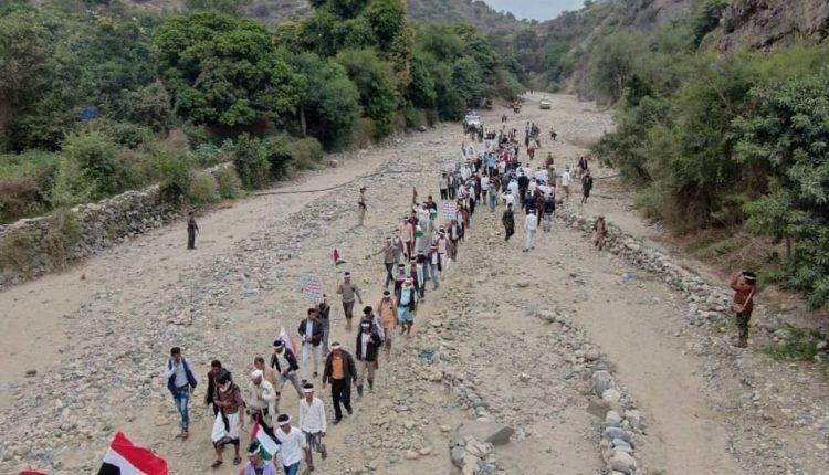 تعز: مسير شعبي في حيفان ووقفة تضامنية لجامعة الحكمة نصرة لغزة