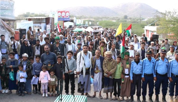 وندد المشاركون في المسيرة بحضور وكيل المحافظة فيصل الفقيه ومسؤول التعبئة العامة بالمحافظة جميل الصوفي، ومدير الأمن العميد محمد العطري وقيادات عسكرية وأمنية وشخصيات اجتماعية، بجرائم الحرب التي يرتكبها العدو الصهيوني بحق الأشقاء في غزة.