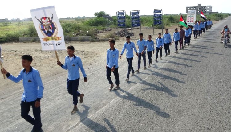 وردد الطلاب المشاركون في المسير، الذي انطلق من المجمع الحكومي بالمديرية إلى قرية الجيلانية بمسافة ثلاثة كيلومترات، بحضور مدير المديرية – مسؤول التعبئة محمد القوزي ومدير قطاع التربية بالمديرية محمد عثمان زين، ومسؤول التدريب والتأهيل للتعبئة أهدل المبكري، هتافات حماسية تؤكد استمرار دعم الشعب الفلسطيني في غزة ومواجهة تصعيد العدو الأمريكي، الصهيوني على اليمن.