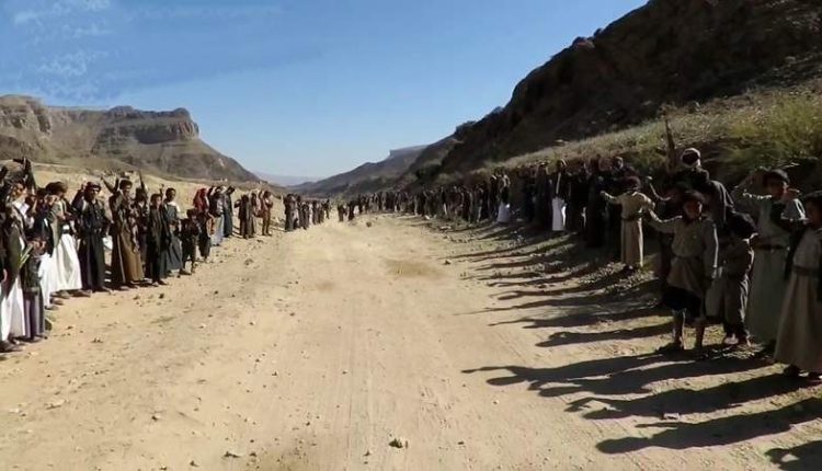 أبناء حريب القراميش بمأرب يحتشدون نصرة للشعب الفلسطيني وتأكيد الجهوزية