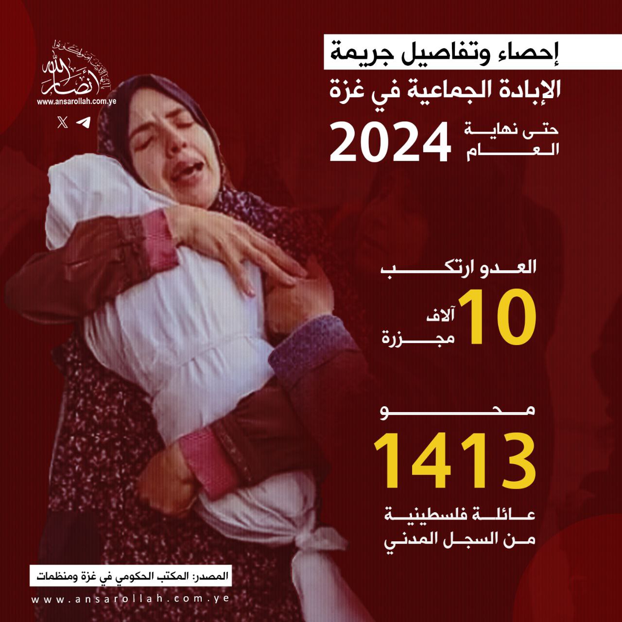 إحصاء وتفاصيل جريمة الإبادة الجماعية في غزة والضفة حتى نهاية 2024 ” إنفوجرافيك”