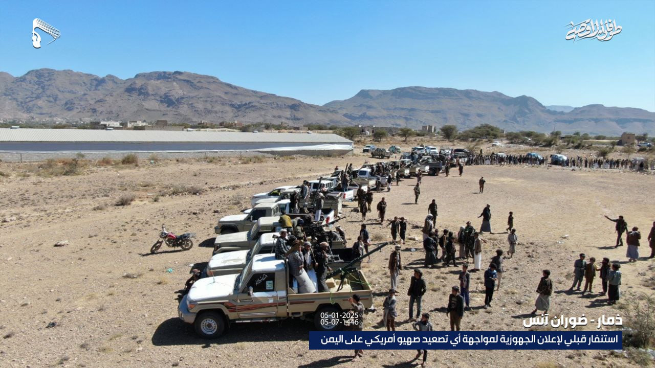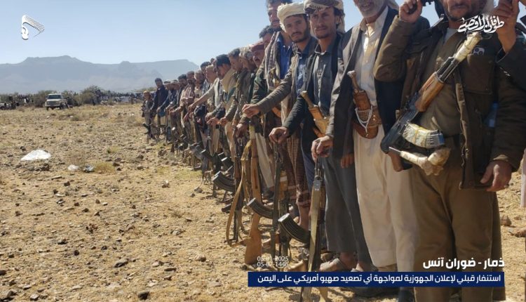 نظّم أبناء مديرية ضوران بمحافظة ذمار، اليوم، وقفة قبلية مسلحة نصرةً للشعب الفلسطيني وتأكيداً على الجهوزية الكاملة لمواجهة أي تصعيد أمريكي صهيوني، تحت شعار “ثابتون مع غزة بهويتنا الإيمانية ومسيرتنا القرآنية”.