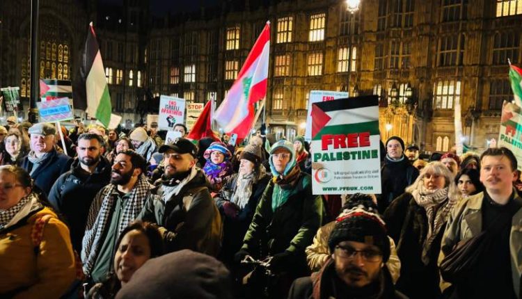 تظاهرة حاشدة أمام البرلمان البريطاني تضامنًا مع فلسطين