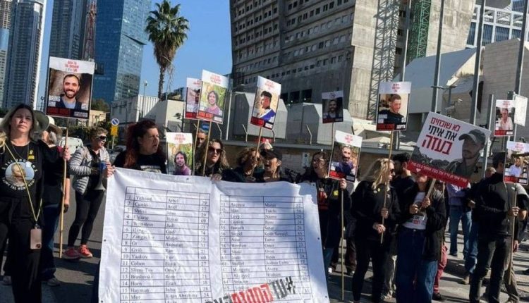 تظاهرة أمام مقر وزارة حرب العدو الصهيوني تطالب بإتمام صفقة التبادل