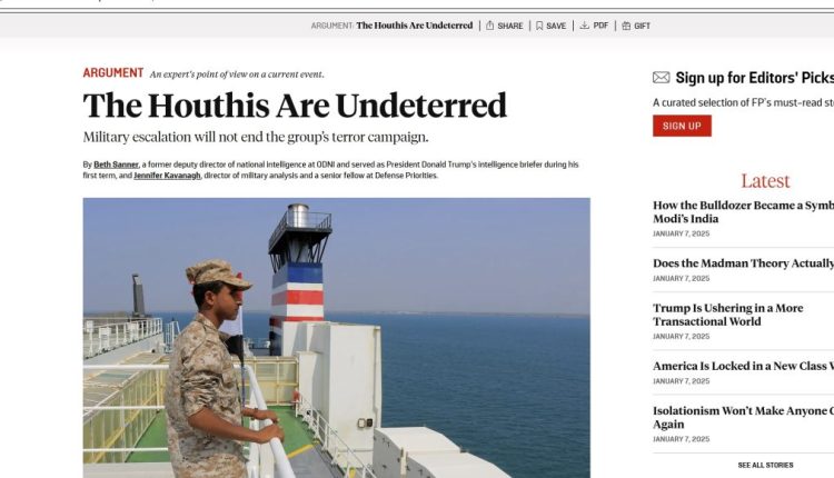 وفي تقرير نشرته مجلة “فورين بوليسي”، أوضحت سانر أن قدرات القوات اليمنية لم تتراجع، بل زادت طموحاتها بشكل خطير. وأشارت إلى ضرورة تبني واشنطن استراتيجية جديدة تركز على مصادر القوة المتنامية للقوات اليمنية بدلاً من التركيز على أعراضها الظاهرة.