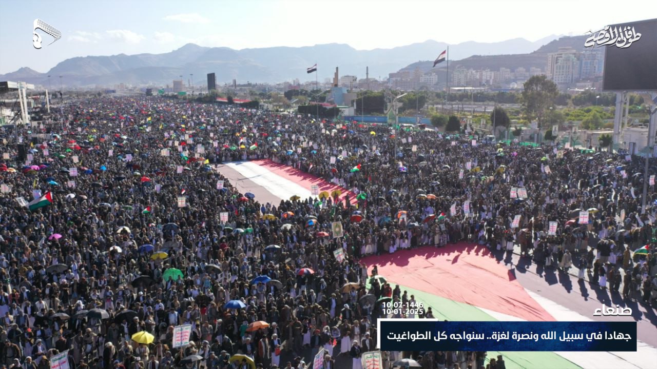 صور جوية| طوفان بشري هادر وغاضب، تزامناً مع غارات ثلاثي الشر على محيط ميدان السبعين… حشود مليونية في مسيرة “جهاداً في سبيل الله ونصرة لغزة.. سنواجه كل الطواغيت” في العاصمة صنعاء 10-07-1446هـ | 10-01-2025م
