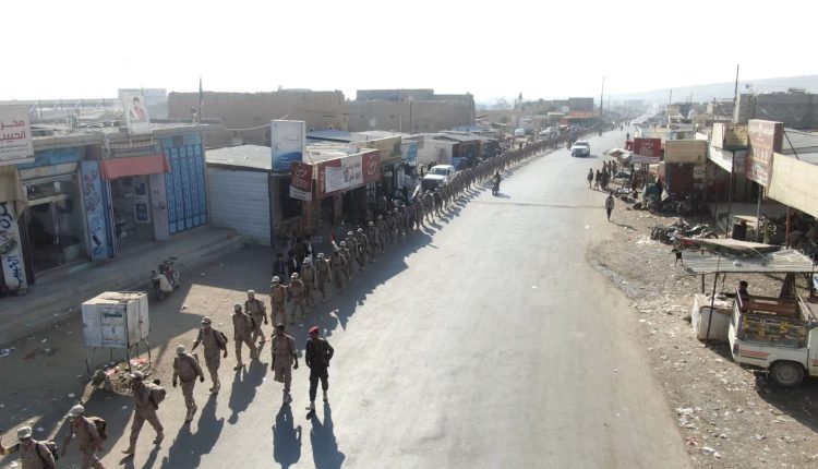 نفذت وحدات رمزية من قوات ألوية المنصور بالله التابعة لوزارة الدفاع، مسيرا عسكريا تحت شعار “الفتح الموعود”.