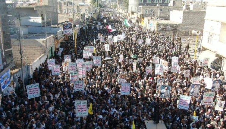 كما أكدت الحشود التمسك بمسار الجهاد نصرة للدين ودفاعا عن الأرض والمقدسات ومقارعة المستكبرين.. مجددّين التفويض لقائد الثورة السيد عبدالملك بدر الدين الحوثي باتخاذ الخيارات لمؤازرة الشعب الفلسطيني.